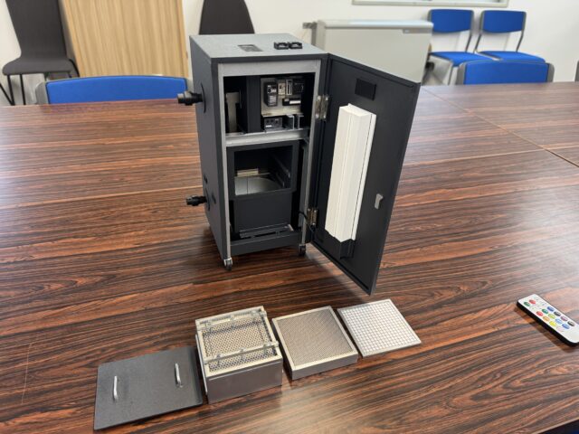 ミニチュア模型制作にあたっては、実際の機器図面を基に、1/5サイズのミニチュア模型として、機器の内部構造やLED点灯動作など、可能な限り実機そのままに制作しております。